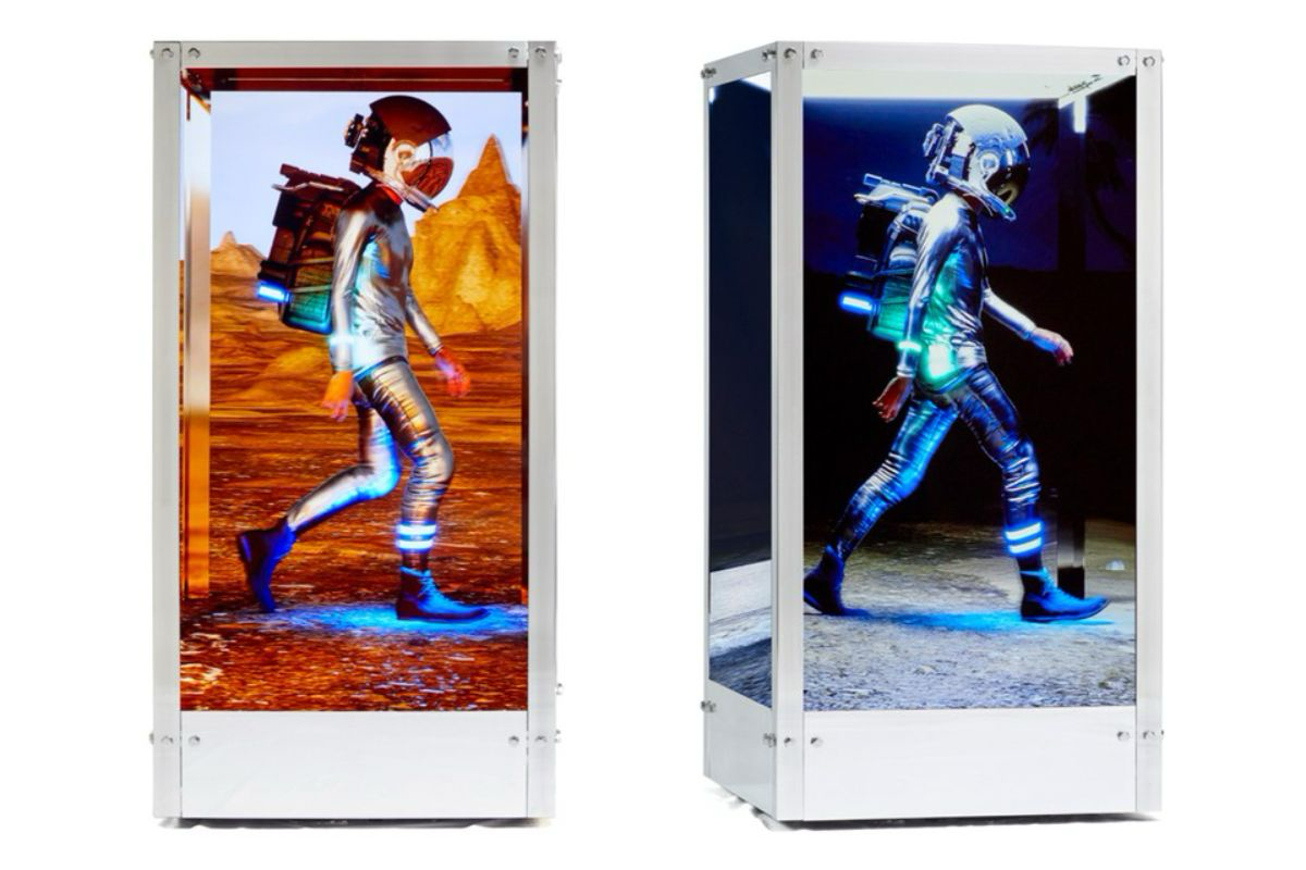 Beeple kembali mencatat rekor dengan Human One, sebuah karya yang memadukan seni fisik dan digital. Human One berbentuk patung kotak setinggi tujuh kaki dengan layar LED di setiap sisi, menampilkan animasi seorang pria futuristik yang terus berjalan di berbagai lanskap.