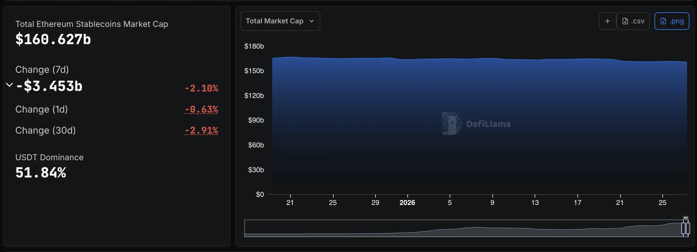 Sempat muncul kekhawatiran bahwa penarikan dana dari Arbitrum ini adalah tanda institusi sedang mencairkan dana (cashing out) dari ekosistem Ethereum. Namun, data spesifik Stablecoin Ethereum dari DefiLlama membantah hal tersebut.