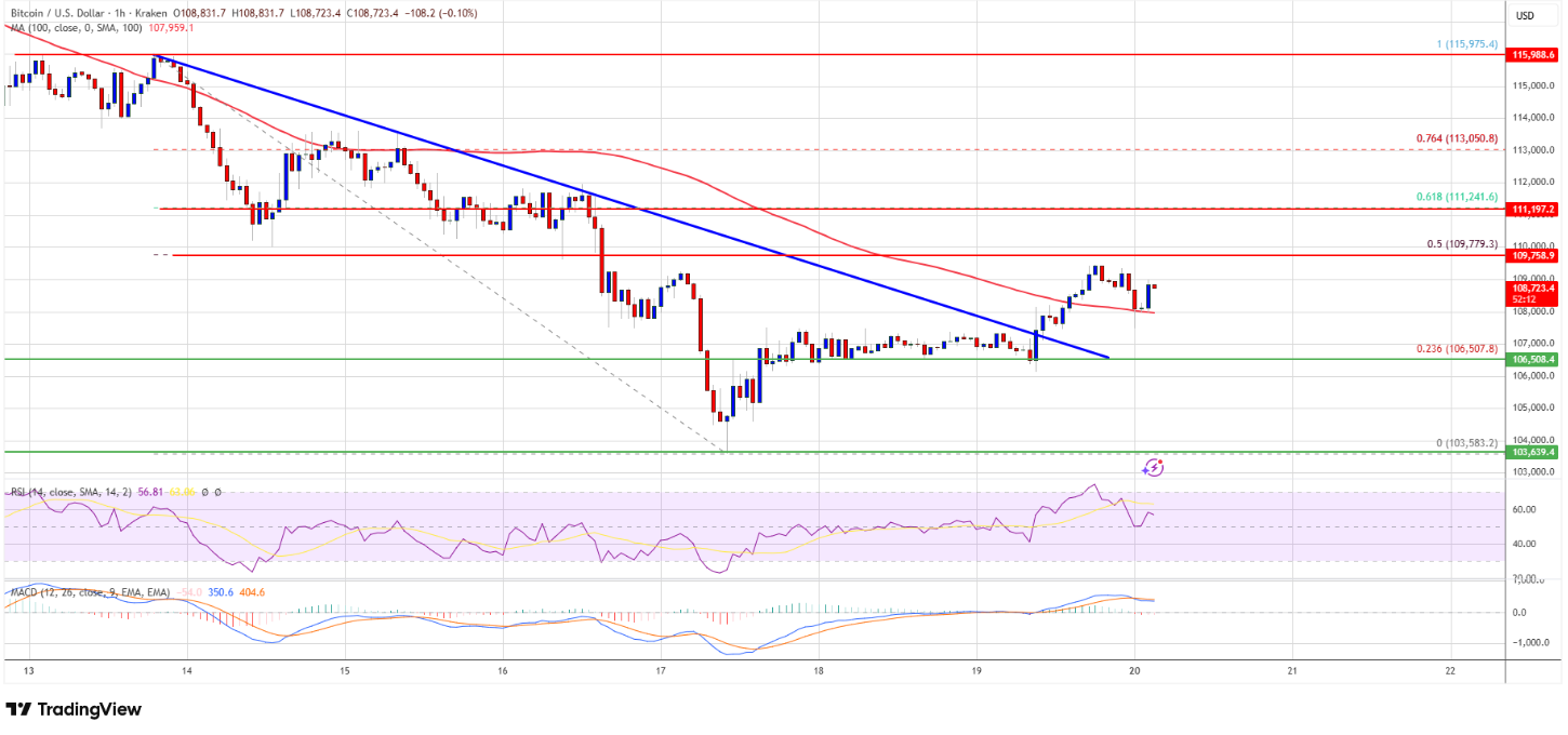 Harga Bitcoin (BTC) menunjukkan tanda-tanda stabilisasi setelah sempat mengalami koreksi signifikan. BTC sempat turun hingga menyentuh level sekitar US$103.500, sebelum kembali menguat dan bertahan di atas US$108.000. Pergerakan ini memberi sinyal bahwa pasar mulai menemukan keseimbangan baru setelah periode volatilitas tinggi.